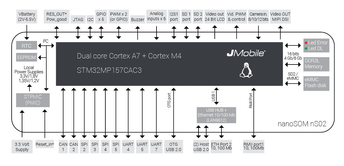 NanoSOM nS02是基于STM32MP1 Dual Cortex -A7Cortex -A7 plus M4 MPU with 3D GPU
